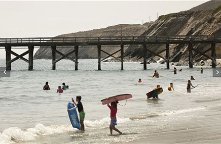 Swimmers enjoy the waters at Gaviota State Park near the entrance to Hollister Ranch. (Al Seib / Los Angeles Times)